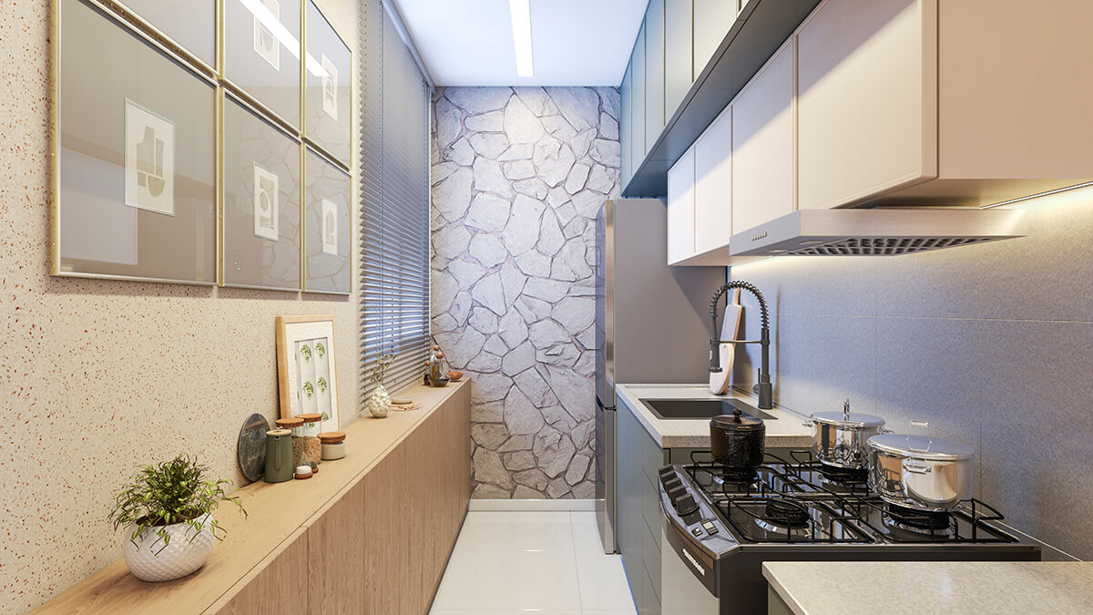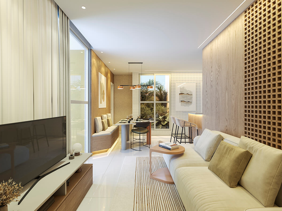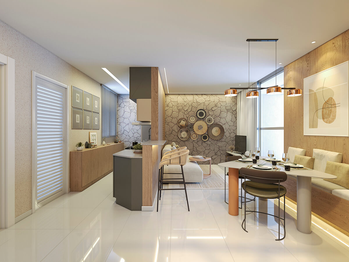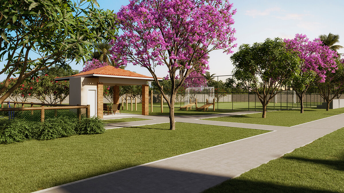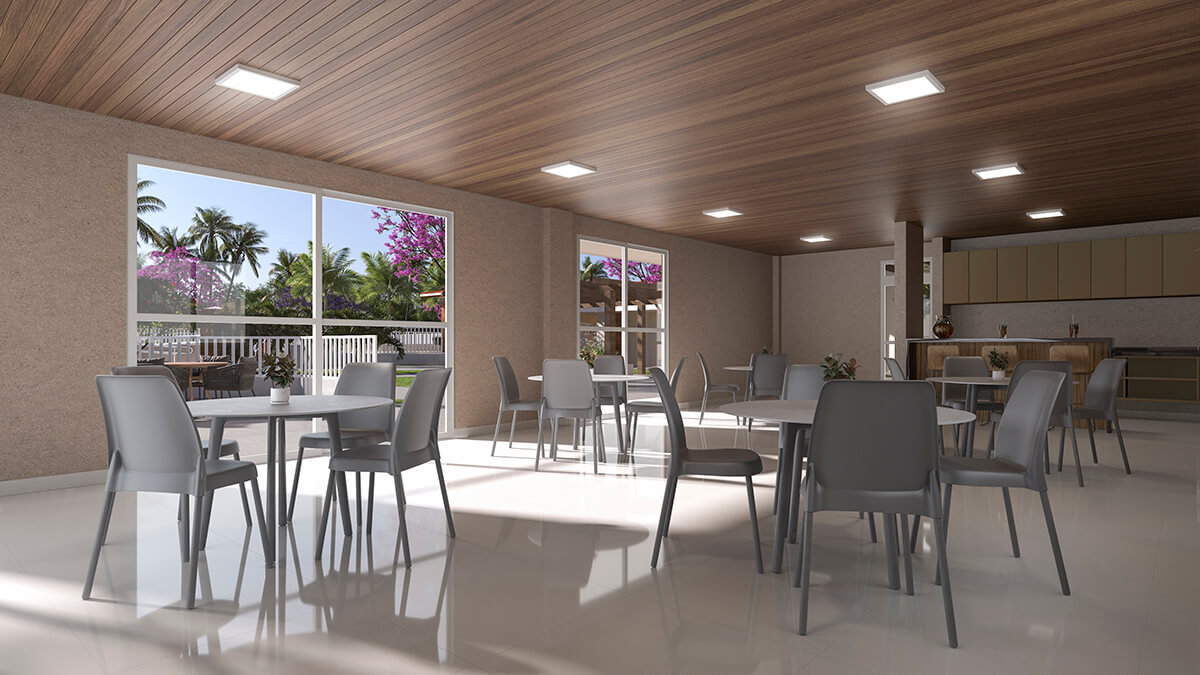 Planta Padrão, 2 quartos sendo 1 suíte. 62,56m². Terrenos de 116m² a 170m². Perspectiva ilustrada. Consulte o corretor para escolher o terreno ideal. Extensão de piso na área de serviço e piscina são ilustrativas, casa entregue